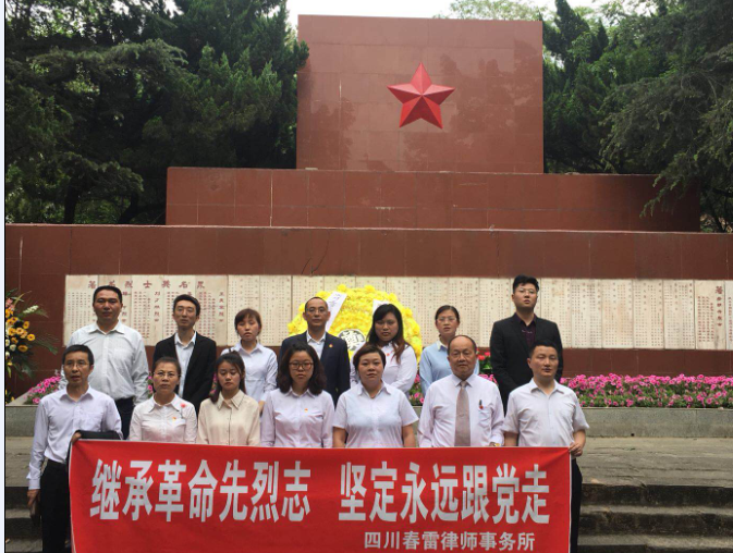 “清明时节雨纷纷,路上行人欲断魂。”四月,一个追思的月份,一个缅怀的月份,为了弘扬民族精神,缅怀革命先烈及其英雄事迹,继承革命烈士的光荣传统和革命遗志,坚定律师队伍永远跟党走的信念,4月4日,春雷所组织党员、律师和工作人员前往绵阳南山革命烈士纪念馆祭祀追思革命先烈。 在向革命烈士敬献花篮、表达哀思后,春雷所党支部书记顾仕义同志代表大家作了发言。