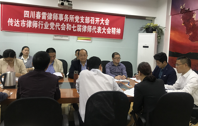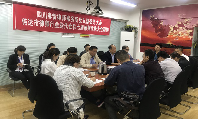 春雷律师事务所传达市律师行业党代会 市律师协会第七届代表大会精神 5月9日,春律律师事务所党支部召开党员律师大会,传达学习绵阳市律师行业第一次党代会精神和绵阳市第七届律师代表大会精神。
