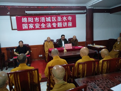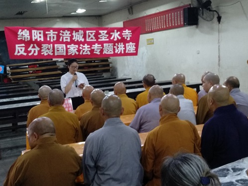 法治宣讲进寺庙 僧俗群众同学法 ——四川春雷律师事务所2018年二季度法律“七进” 活动剪影 四川春雷律师事务所积极响应党委和政府、司法行政机关关于推进法律进寺院的号召,深入寺院,为寺院常住僧众和常住居士以及信教群众进行法治讲座,宣讲党的方针政策和国家法律法规。 二0一八年三月六日,吕安全律师应邀到圣水寺专题宣讲“习近平总书记莅临四川视察指导工作”,通过宣讲使广