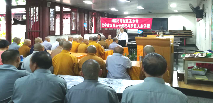二0一八年六月三日,春雷所吕安全律师为圣水寺僧人和居士讲解社会主义核心价值观与宗教的关系,重点讲了五个方面:一是宗教关系与社会主义社会的内在关系;二是社会主义核心价值观需贯穿于相关主体的内外在关系中;三是宗教关系的自在转化与自为转化;四是社会主义社会和谐关系对宗教关系的包容与融合;五是社会主义社会宗教关系和谐发展的趋势。
