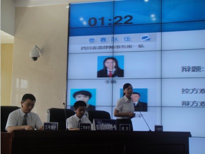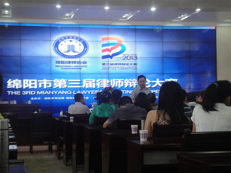 为了进一步推进律师行业为“实现伟大中国梦、建设美丽繁荣和谐四川”主题活动的深入开展,绵阳市律师协会、绵阳市司法局共同举办的绵阳市第三届律师辩论大赛拉开帷幕,大赛宗旨是在充分展示律师良好形象,深入挖掘律师英才,提高律师辩护专业素质和水平,提高在出庭中的对抗能力及技能。 本次辩论大赛分为初赛、复赛、决赛三个环节,时间为一个月,全市34家律师事务所,有17家律师事务所组成18支队伍参赛(众诚律师事务所、天府风律师事务所、林志律师事务所、太白律师事务所、子云律师事务所、鼎天律师事务所、睿桥律师事务所、真道律师事务所、科大律师事务所、春雷律师事务所、道融民舟律师事务所、蜀华律师事务所、联衡律师事务所、博思律师事务所、科通律师事务所、蜀仁律师事务所、石泉律师事务所),其中,春雷律师事务所组织了春雷一队(李艳、雍帆、钟赤宇)和二队(李磊、李雨嘉、汪飞)。