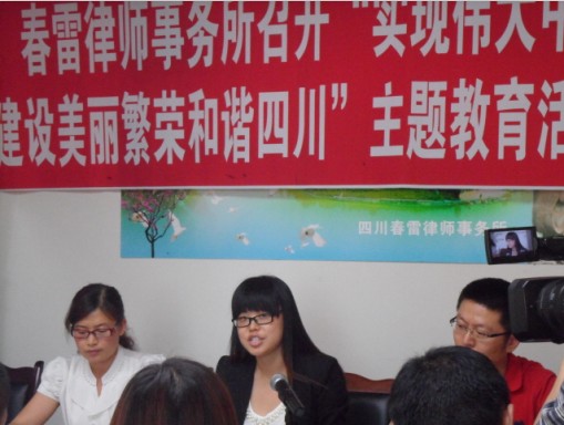 为了把“实现伟大中国梦、建设美丽繁荣和谐四川”主题教育活动不断引向深入,春雷律师事务所在接到上级文件后,即召开支委会研究制定安排意见、召开动员大会,传达各级党委文件。召开学习会和讨论会,于2013年6月8日举行了中国梦首场宣讲,宣讲会由支部黄法森副书记主持。
