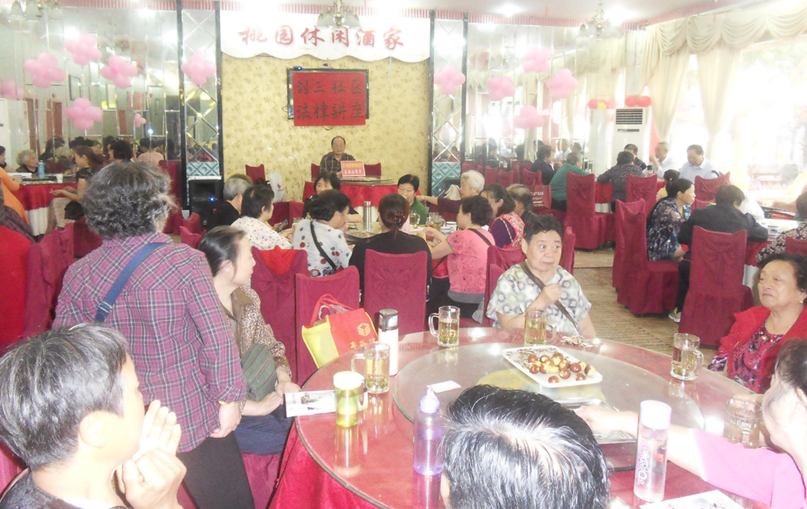 2015年10月16日上午,涪城区剑三社区举行老年人学法守法,建设和谐家庭法制培训会,社区党支部书记林雪雯主持讲座,吕安全就老年人权益保障法,继承法和居民道德与法制分别作了专题讲座,听取讲座的老年人212人。