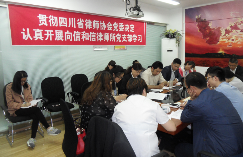 春雷所召开会议贯彻省律师协会党委决定 认真开展向信和信律师事务所党支部学习 春雷律师事务所召开党员律师大会,全文学习了四川省律师协会党委关于在全省律师行业基层党支部中,广泛开展向信和信律师事务所党支部学习的决定。