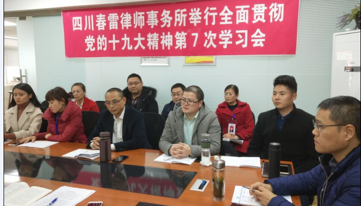 报告是高瞻远瞩的政治宣言 报告是科学务实行动新纲领 2017年12月6日,春雷律师事务所举行第七次集中学习党的十九大报告专题会。党支部书记顾仕义组织大家系统学习了十九大报告的四五六个问题。(四)决胜全面建成小康社会,开启全面建设社会主义现代化国家新征程;(五)贯彻新发展理念,建设现代化经济体系;(六)健全人民当家作主制度体系,发展社会主义民主政治。在学习中坚持读原文和谈体会相结合,使专题学习收到了良好效果。在三个问题学习后,到会同志进行了大会讨论。 在发言中说:十九大报告是高瞻远瞩的政治宣言,是科学务实的行动新纲领,作为当代律师必须学深、悟透十九大精神,深刻领会精神实质,在吃透内涵上下功夫,我们要原汁原味学习报告,深刻领会报告提出的新论断、新使命、新目标、新要求,准确把握十九大的科学内涵和精神实质及本质要求。认真读懂报告的政治意义、历史意义、理论意义、实践意义,用新的思维去学习贯彻报告精神的全新论断。