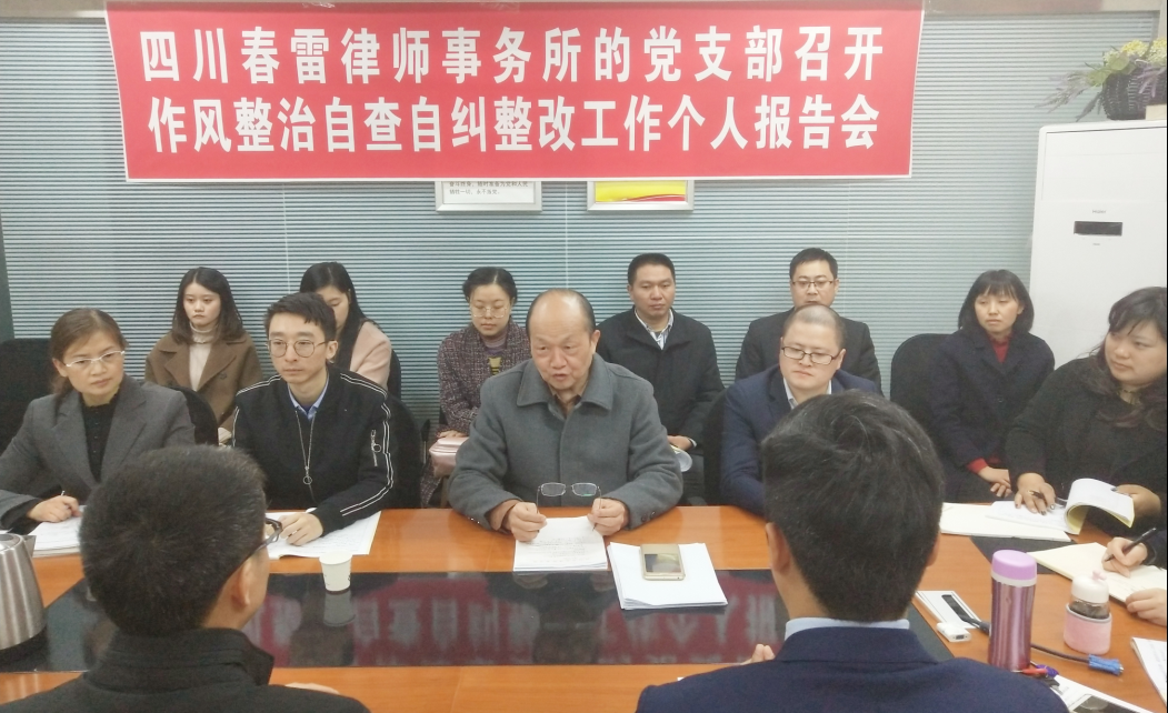 深入思想找问题 紧贴实际搞整改 ——四川春雷律师事务所党支部召开“作风整治” 自查自纠整改工作个人报告会
