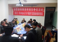 春雷律师事务所在2010年11月19日举行创先争优活动第八次学习会,党支部认真组织全体党员律师、律师及工作人员学习中央办公厅关于推进学习型党组织建设的意见,学习会上党支部书记顾仕义对推进学习型党组织建设的意见进行的专题辅导,到会同志进行了认真的讨论,大家一致认为,建设学习型党组织,是我们党提出的一项重大战略任务,也是新形势下加强和改进党的建设的重大创新举措,一是坚持理论武装增强学习的自觉性。理论来自实践,又指导实践。坚持用科学理论武装头脑、指导实践、推动工作,是我们党优良学风的根本要求。我们共产党员应当高度重视搞好自身的理论武装,将理论武装作为做好法律服务工作的前提条件,自觉深入学习马克思主义理论尤其是马克思主义中国化最新成果,——中国特色社会主义理论体系全面系统、完整准确掌握中国特色社会主义理论体系的重大意义、时代背景、实践基础、科学内涵和历史地位,只有认真读书、自觉学习、勤于思考,用中国特色社会主义理论体系武装自己的头脑才能坚持优良的学风。二是坚持理论创新增强理论学习的创新性。马克思主义之所以是科学的、之所以具有强大的生命力,就是因为它能够随着时代和实践的发展,变化而不断丰富的发展。当前坚持优良学风必须深刻认识中国特色社会主义理论体系是不断发展的开放的理论体系,做到坚持与创新相结合,继承与发展相统一。三是坚持与时俱进、增强学习的紧迫感,只有坚持与时俱进,增强学习的紧迫感才能跟上时代进步的步伐,只有这样世情、国情、党情的深刻变化以只争朝夕的精神学习和掌握工作所需的一切新思想、新知识、新经验,增强工作的原则性、系统性、预见性和创造性。用革命的理论指导我们的法律服务工作,更好的赋予社会发展和经济建设。