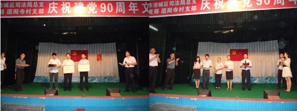 ![]() 2011年6月29日,根据各级党委关于纪念中国共产党成立九十周年的安排部署,以发扬光荣传统、坚定共产主义信念、忆党史、感党恩、强党性、促党建为主题的“中共绵阳市涪城区司法局总支、东岳社区支部、团阳寺村支部庆祝建党九十周年文艺汇演”在绵阳市川剧团会场隆重举行。