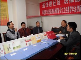 2011年10月21日早上,绵阳市司法局律管科陪同市社团工委书记苏兴高和社团工委办公室主任鲍刚,来我所指导“争先创优”和“警民亲”活动。